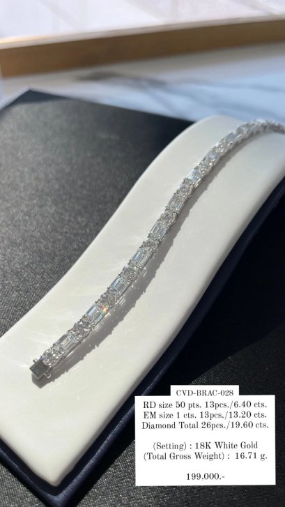 สร้อยข้อมือเพชร เพชร Round ขนาด 50 ตังค์ 13 เม็ด เพชร Emerald ขนาด 1 กะรัต 13 เม็ด