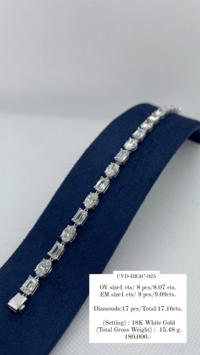 สร้อยข้อมือเพชร เพชร Oval ขนาด 1 กะรัต 8 เม็ด เพชร Emerald ขนาด 1 กะรัต 9 เม็ด